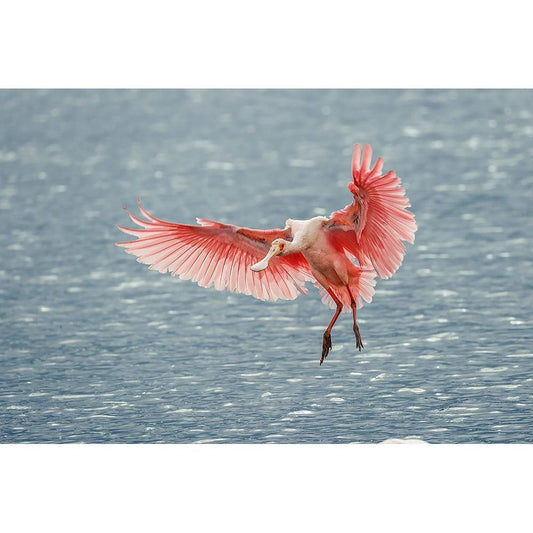 Roseate spoonbill landing-Merritt Island National Wildlife Refuge-Florida Gold Ornate Wood Framed Art Print with Double Matting by Jones, Adam