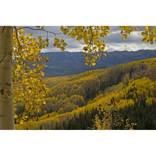 CO, Uncompahgre NF Mountain and aspens in autumn Gold Ornate Wood Framed Art Print with Double Matting by Grall, Don