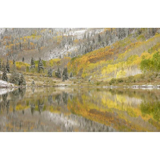 CO, Maroon Lake, Fresh snow and aspen trees Gold Ornate Wood Framed Art Print with Double Matting by Grall, Don