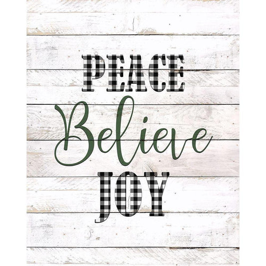 Peace Believe Joy Plaid Gold Ornate Wood Framed Art Print with Double Matting by Kimberly, Allen