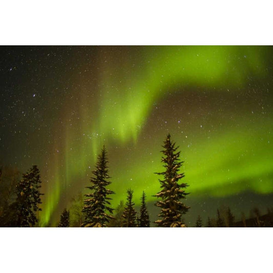 USA, Alaska Aurora borealis over spruce forest Gold Ornate Wood Framed Art Print with Double Matting by Illg, Cathy and Gordon
