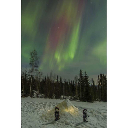 AK A quinzee snow shelter and aurora borealis Gold Ornate Wood Framed Art Print with Double Matting by Illg, Cathy and Gordon