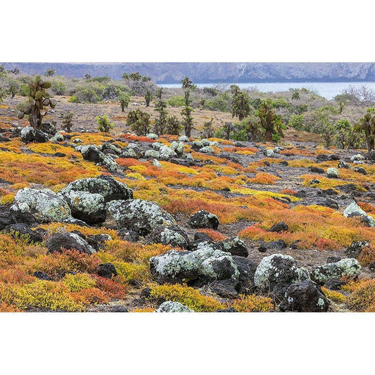 Opuntia prickly pear cactus-South Plaza Island-Galapagos Islands-Ecuador Gold Ornate Wood Framed Art Print with Double Matting by Jones, Adam