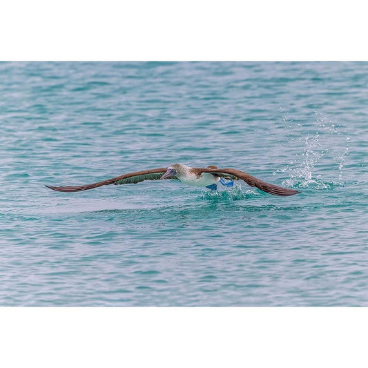 Blue-footed booby diving for fish-San Cristobal Island-Galapagos Islands-Ecuador Gold Ornate Wood Framed Art Print with Double Matting by Jones, Adam