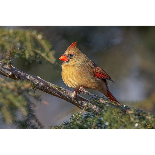 Female northern cardinal in winter Gold Ornate Wood Framed Art Print with Double Matting by Jones, Adam