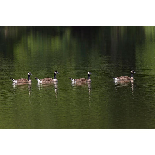 Canada geese swimming together Gold Ornate Wood Framed Art Print with Double Matting by Jones, Adam