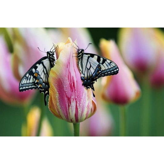 Two Eastern Tiger Swallowtail Butterfly on Tulip Gold Ornate Wood Framed Art Print with Double Matting by Rotenberg, Nancy