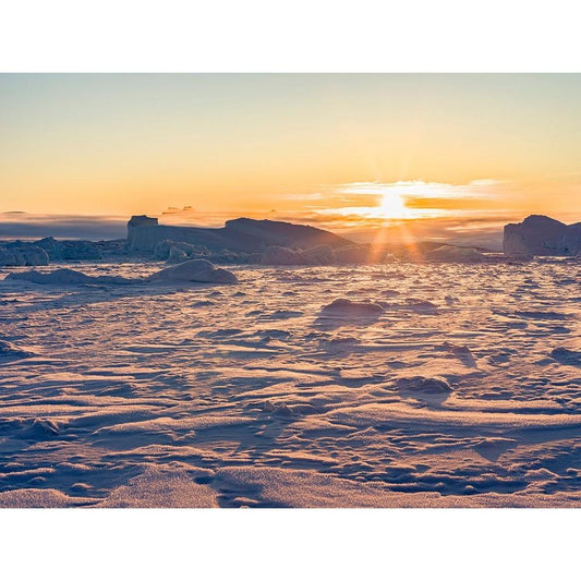 Sunrise during winter at the Ilulissat Fjord-located in the Disko Bay in West Greenland Gold Ornate Wood Framed Art Print with Double Matting by Zwick, Martin