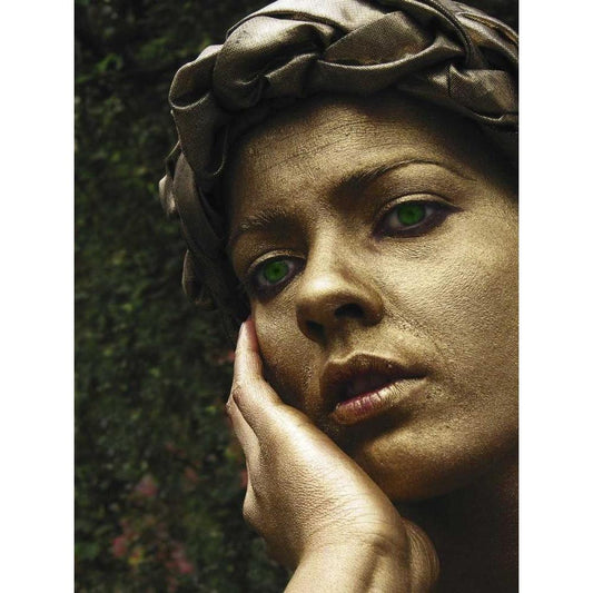 England, London Gold-painted face of female mime Gold Ornate Wood Framed Art Print with Double Matting by Ross, Nancy , Steve