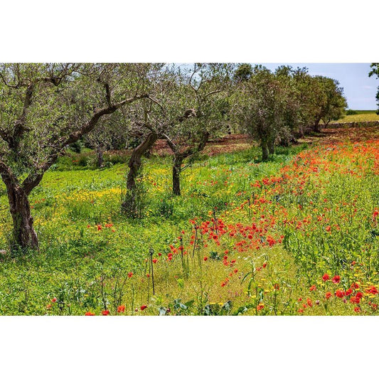 Italy-Apulia-Province of Bari Countryside with poppies and olive trees Gold Ornate Wood Framed Art Print with Double Matting by Wilson, Emily