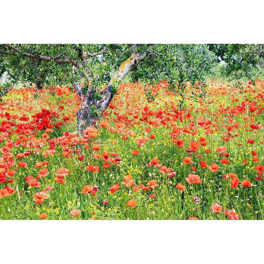 Italy-Apulia-Metropolitan City of Bari-Gioia del Colle Poppies growing amid rows of olive trees Gold Ornate Wood Framed Art Print with Double Matting by Wilson, Emily