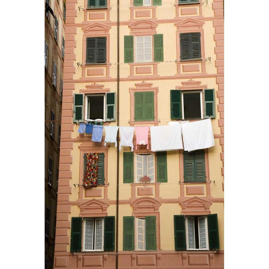Italy, Camogli Laundry hangs across a building Gold Ornate Wood Framed Art Print with Double Matting by Kaveney, Wendy