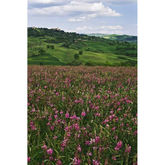 Italy, Pienza Medieval town seen on hilltop Gold Ornate Wood Framed Art Print with Double Matting by Flaherty, Dennis