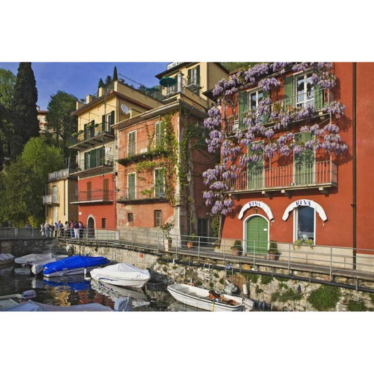 Italy, Varenna Boats moored in village harbor Gold Ornate Wood Framed Art Print with Double Matting by Flaherty, Dennis