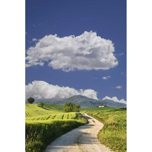 Italy, Tuscany Road leading to a villa Gold Ornate Wood Framed Art Print with Double Matting by Flaherty, Dennis
