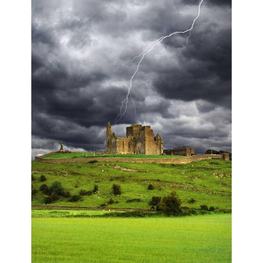 Ireland, Tipperary Lightning over Rock of Cashel Gold Ornate Wood Framed Art Print with Double Matting by Flaherty, Dennis