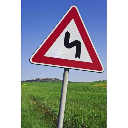 Italy, Tuscany, Pienza Road sign warning Gold Ornate Wood Framed Art Print with Double Matting by Flaherty, Dennis