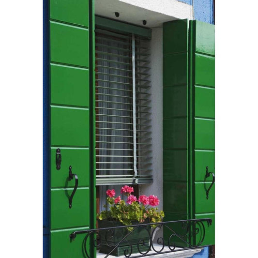 Italy, Venice Flowerbox and window shutters Gold Ornate Wood Framed Art Print with Double Matting by Flaherty, Dennis
