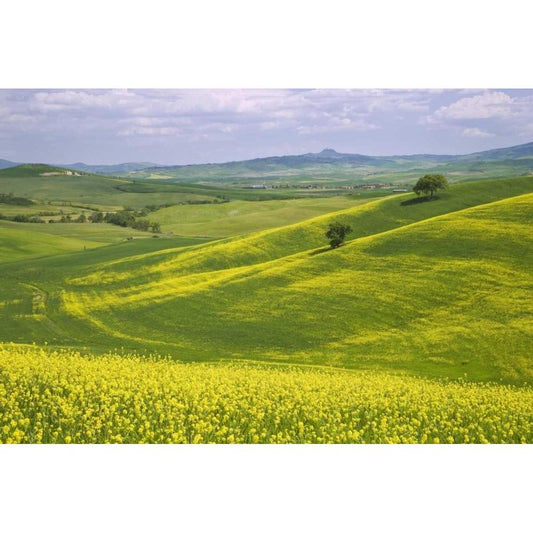 Italy, Tuscany Canola plants in the Val dOrcia Gold Ornate Wood Framed Art Print with Double Matting by Flaherty, Dennis