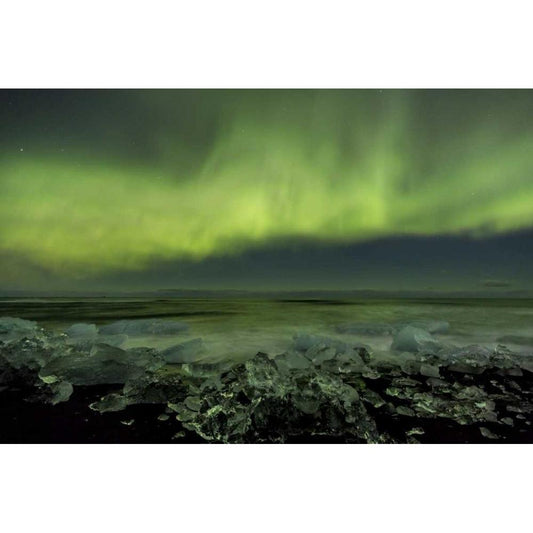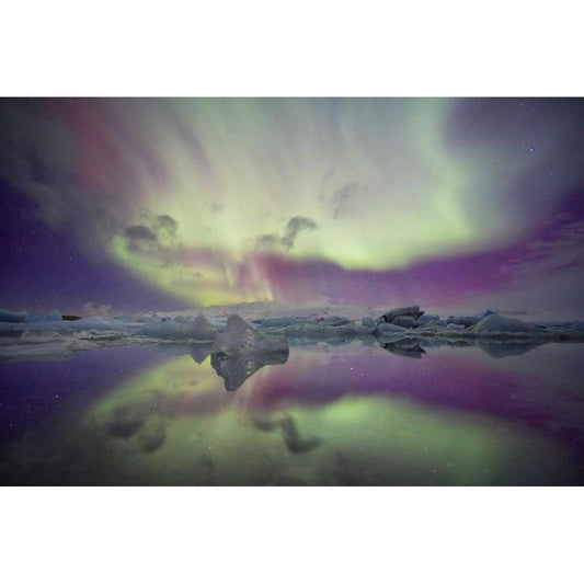 Iceland, Jokulsarlon Aurora lights over a lagoon Gold Ornate Wood Framed Art Print with Double Matting by Anon, Josh