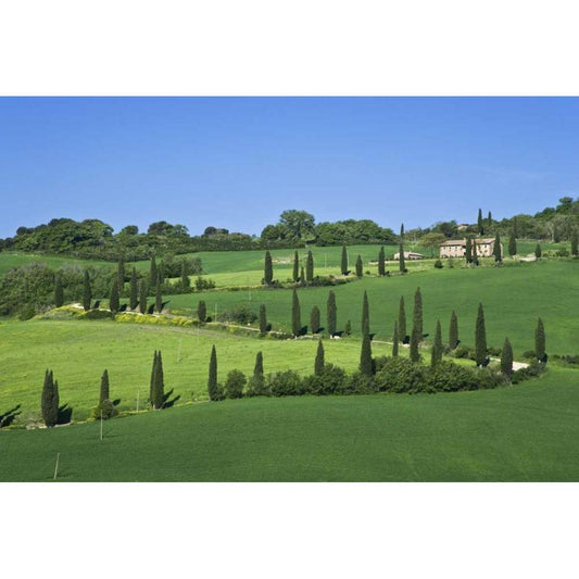 Italy, Tuscany Cypress trees line road to villa Gold Ornate Wood Framed Art Print with Double Matting by Flaherty, Dennis