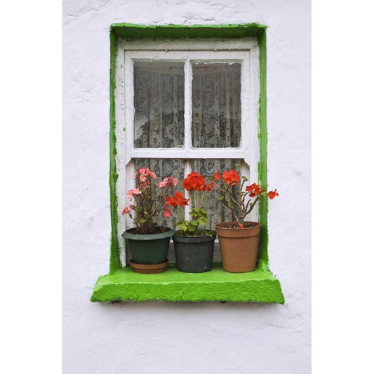 Ireland, Cashel Potted flowers on a window sill Gold Ornate Wood Framed Art Print with Double Matting by Flaherty, Dennis