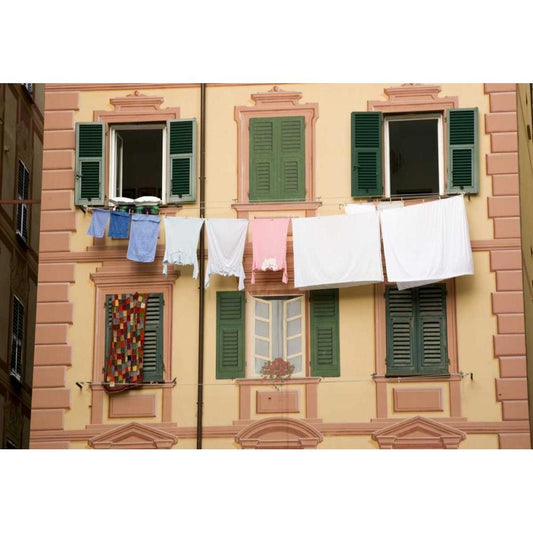 Italy, Camogli Laundry hangs across a building Gold Ornate Wood Framed Art Print with Double Matting by Kaveney, Wendy