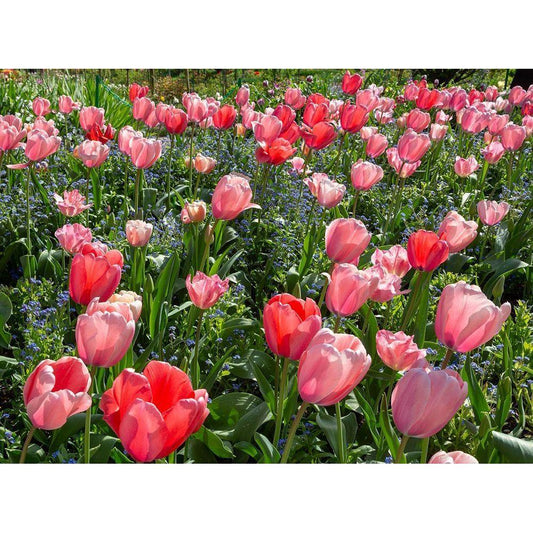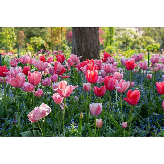 France-Giverny Pink and red backlit tulips in Monets Garden Gold Ornate Wood Framed Art Print with Double Matting by Jaynes Gallery