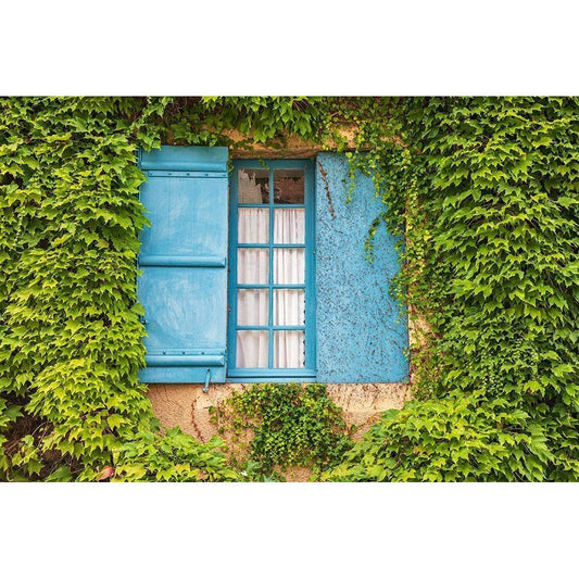 France-Dordogne-Hautefort A blue shuttered window in an ivy covered wall in the town of Hautefort Gold Ornate Wood Framed Art Print with Double Matting by Wilson, Emily