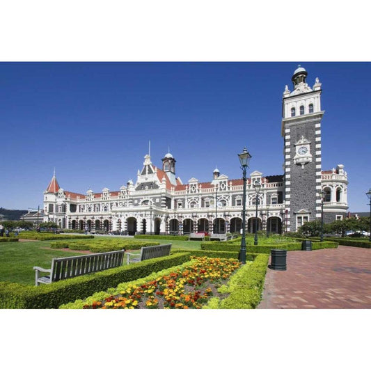 New Zealand, Dunedin Park by Railroad Station Gold Ornate Wood Framed Art Print with Double Matting by Flaherty, Dennis