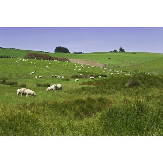 New Zealand, South Island Sheep grazing in field Gold Ornate Wood Framed Art Print with Double Matting by Flaherty, Dennis
