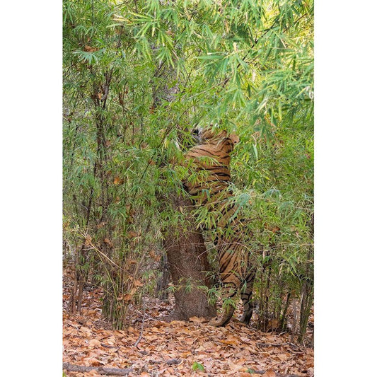 India-Madhya Pradesh-Bandhavgarh National Park Bengal tiger sent marking tree in bamboo habitat Gold Ornate Wood Framed Art Print with Double Matting by Hopkins, Cindy Miller
