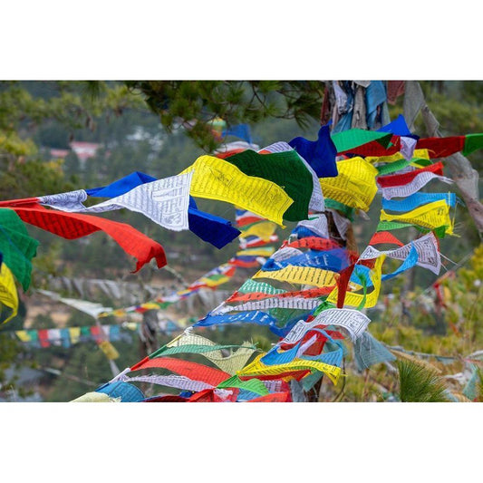 Bhutan-Thimphu Colorful prayer flags on mountain top at the Sangaygang Geodetic Station Gold Ornate Wood Framed Art Print with Double Matting by Hopkins, Cindy Miller