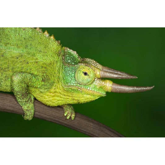 Kenya Close-up of Jacksons Chameleon on limb Gold Ornate Wood Framed Art Print with Double Matting by Flaherty, Dennis