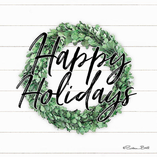 Happy Holidays Boxwood Wreath Gold Ornate Wood Framed Art Print with Double Matting by Ball, Susan