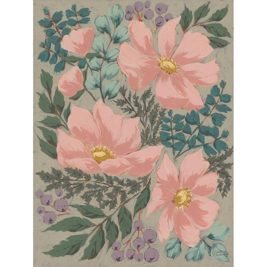 Pink Poppies Gold Ornate Wood Framed Art Print with Double Matting by Norman, Michele