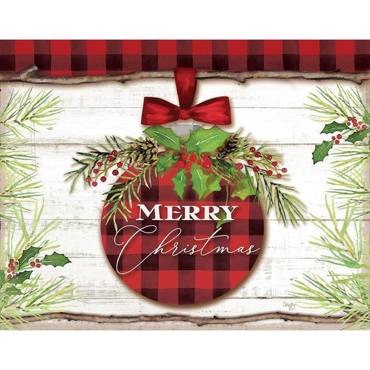 Merry Christmas Ornament Gold Ornate Wood Framed Art Print with Double Matting by Mollie B.