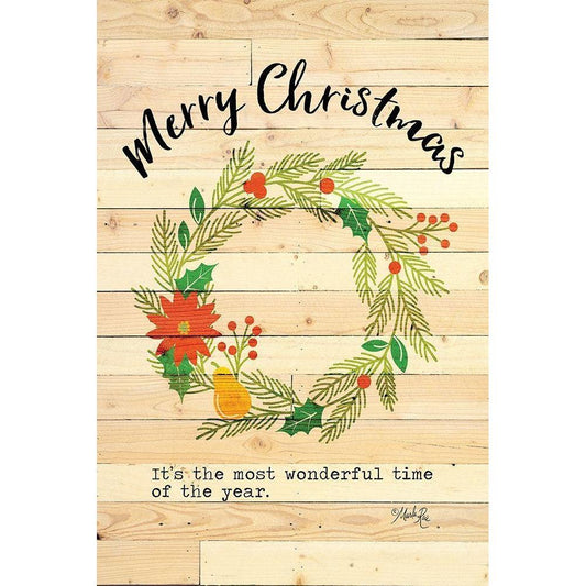 Merry Christmas Wreath Gold Ornate Wood Framed Art Print with Double Matting by Rae, Marla