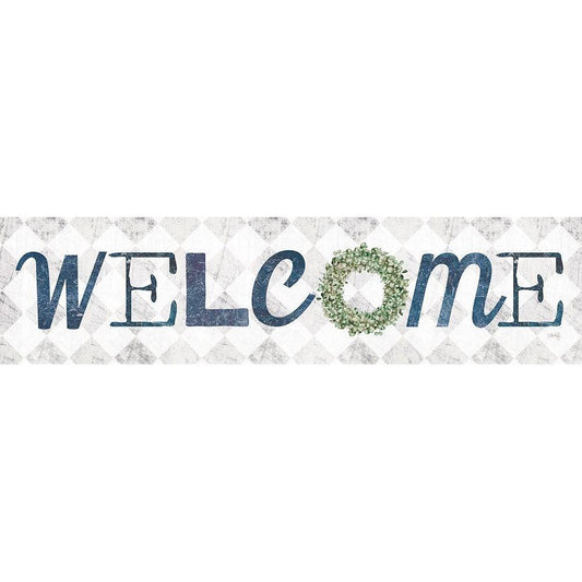 Welcome with Eucalyptus Wreath I Gold Ornate Wood Framed Art Print with Double Matting by Rae, Marla