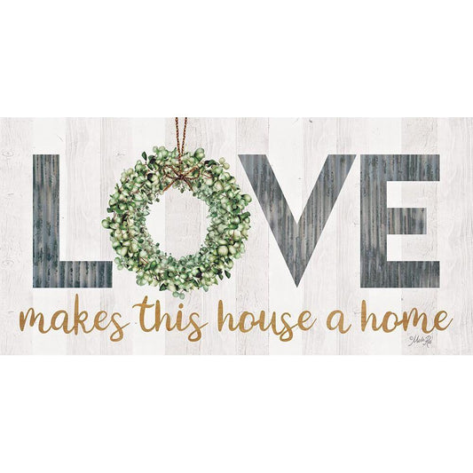 Love Makes This House a Home with Wreath Gold Ornate Wood Framed Art Print with Double Matting by Rae, Marla