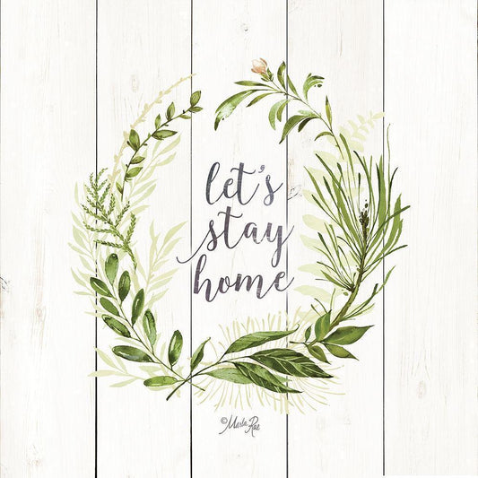 Lets Stay Home Wreath Gold Ornate Wood Framed Art Print with Double Matting by Rae, Marla