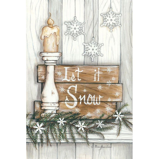 Let It Snow Snowflakes Gold Ornate Wood Framed Art Print with Double Matting by June, Mary Ann
