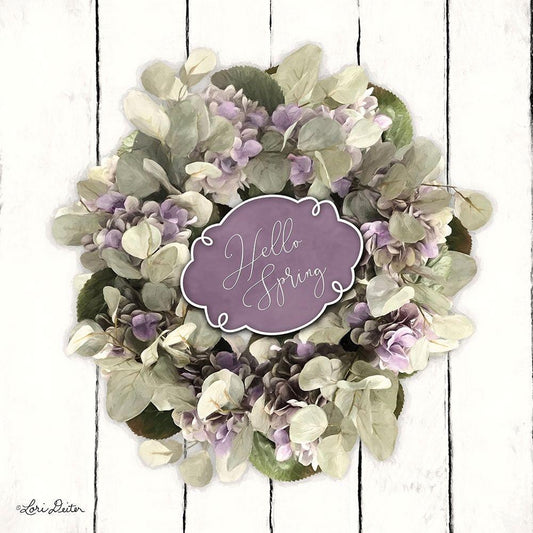 Hello Spring Wreath Gold Ornate Wood Framed Art Print with Double Matting by Deiter, Lori