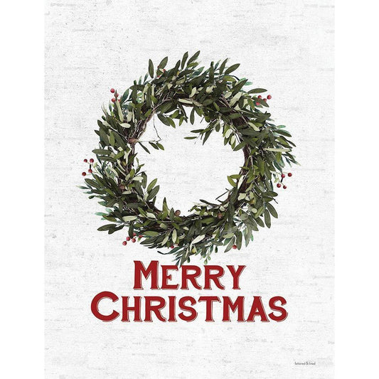 Merry Christmas Wreath Gold Ornate Wood Framed Art Print with Double Matting by Lettered and Lined