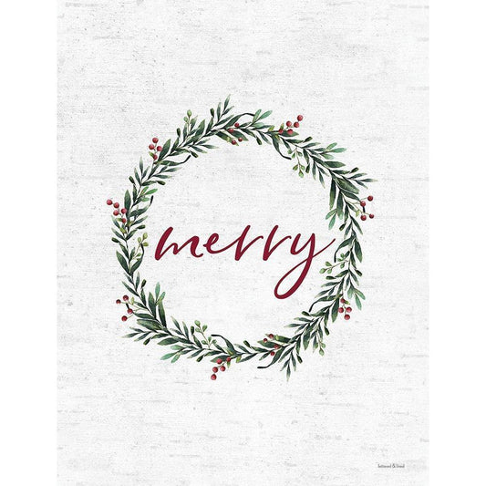 Merry Wreath Gold Ornate Wood Framed Art Print with Double Matting by Lettered and Lined