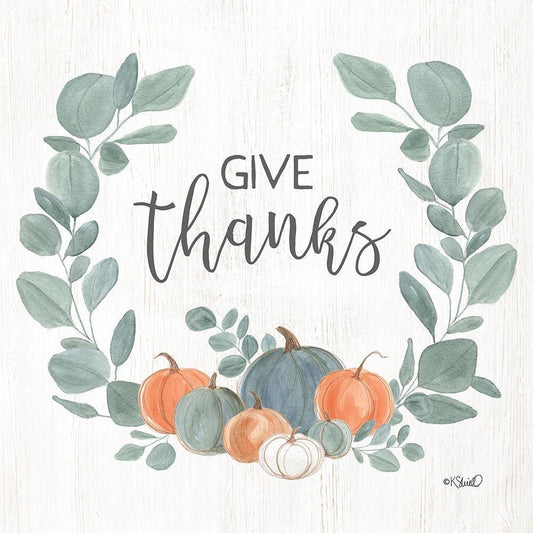 Eucalyptus Pumpkins Give Thanks Gold Ornate Wood Framed Art Print with Double Matting by Sherrill, Kate