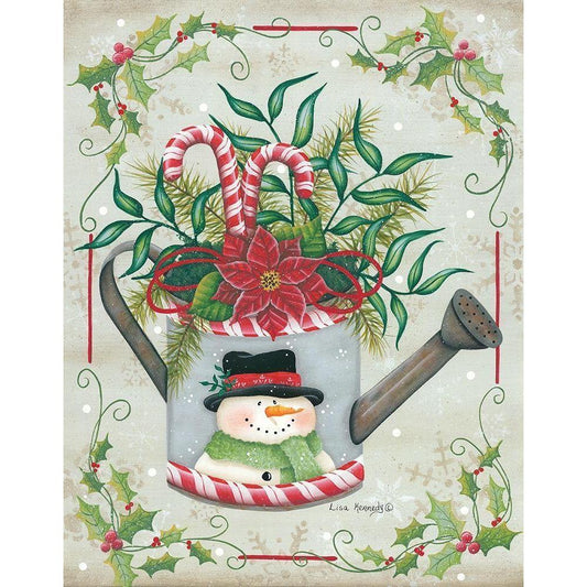 Christmas Watering Can Gold Ornate Wood Framed Art Print with Double Matting by Kennedy, Lisa