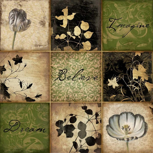 9 patch freen floral 2-2 Gold Ornate Wood Framed Art Print with Double Matting by Grey, Jace