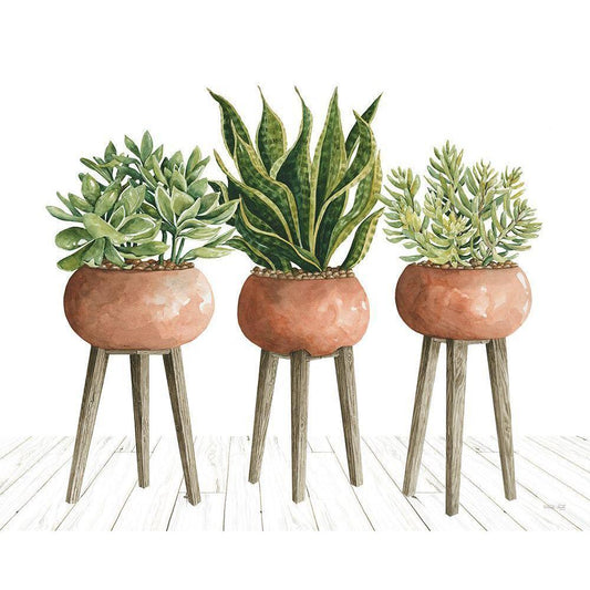 Clay Pot Trio of Plants Gold Ornate Wood Framed Art Print with Double Matting by Jacobs, Cindy
