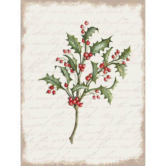 Holly Christmas Botanical Gold Ornate Wood Framed Art Print with Double Matting by Jacobs, Cindy